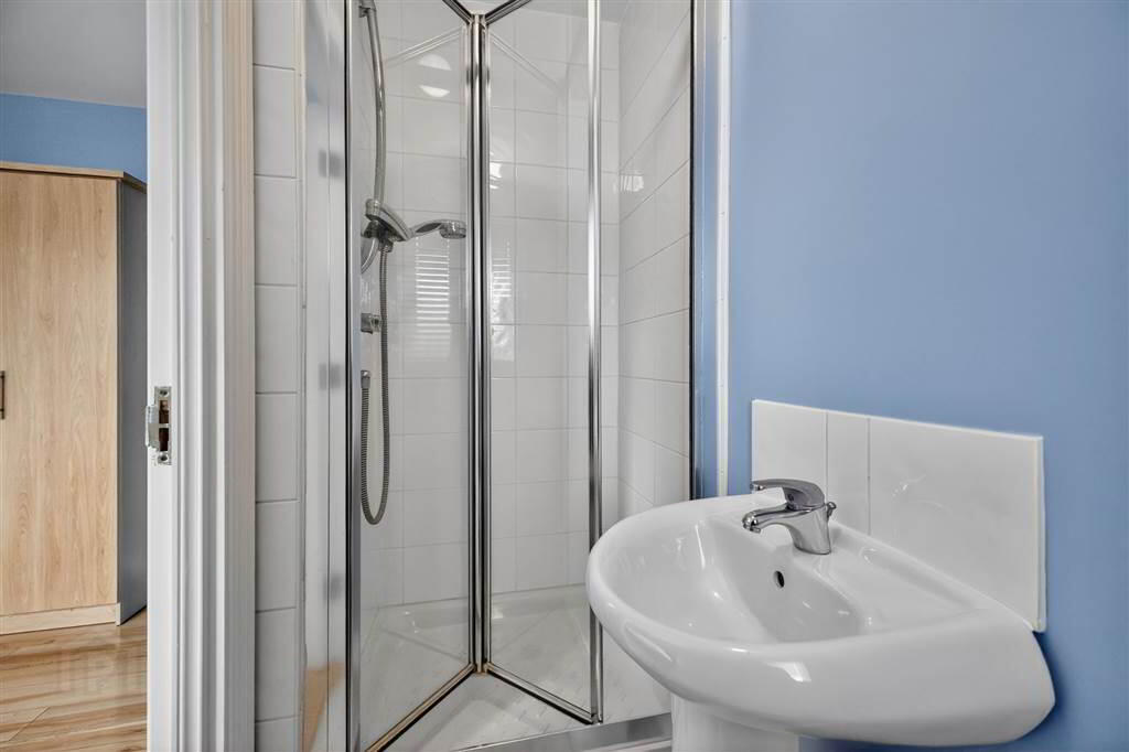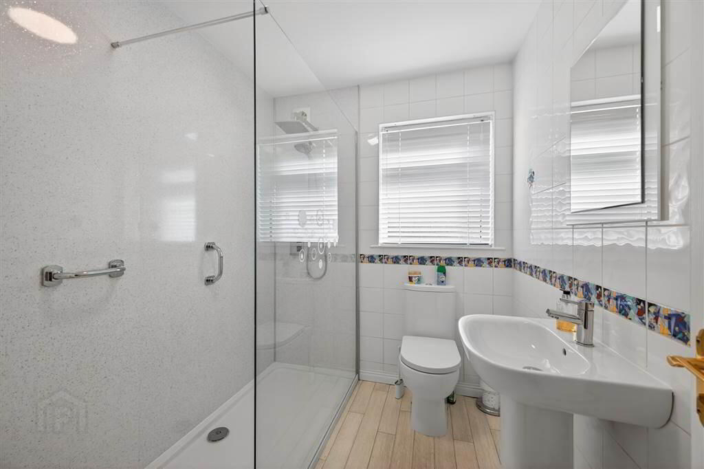 Low Flush W/C, Pedistal Wash Hand Basin, Large Walk In Shower Cubicle, Part Tiled Walls, Panelled Radiator, Extractor Fan.